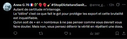 J'ai aussi vu passer un.e complotiste hardcore, qui a néanmoins le mérite d'avoir une certaine sincérité :