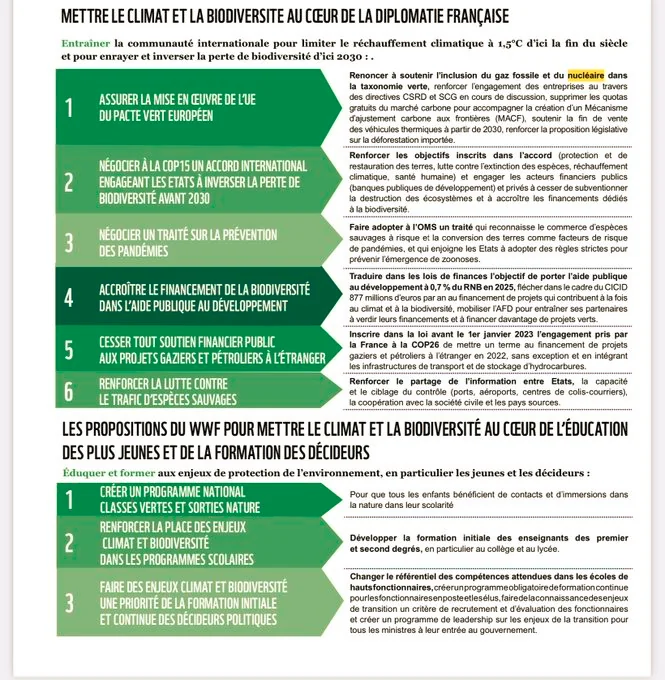 Par exemple, dans le tract du WWF (qui appartient donc audit lobby) ci-contre, le nucléaire est associé au gaz, comme quelque chose qui causerait des dommages au climat et à la biodiversité.