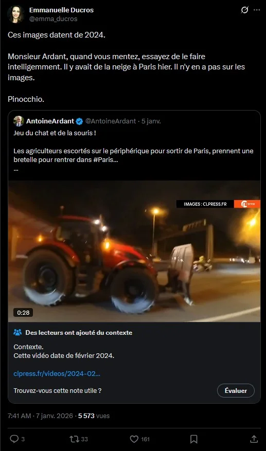 On a aussi vu beaucoup d'images de 2024, notamment le 6 et 7 janvier. En effet, un grand blocage de Paris avait été annoncé, mais la neige leur a damé le pion. On a donc vu ressurgir des images des manifestations de 2024.