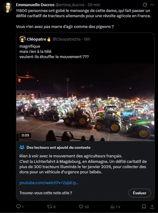Son mensonge étant dénoncé par le préfet, elle l'admet le lendemain, sans s'excuser et en prétendant qu'il y en a bien un qui avait perdu son agrément sanitaire. La fake news sera néanmoins très largement diffusée et ressort la veille de la manifestation prévue le 6 janvier, notamment grâce à Patrick Legras (qui savait très bien que c'était un mensonge).