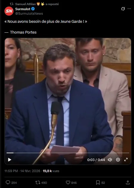 Le groupe parlementaire s'est notamment levé en applaudissant "Vive la Jeune Garde" une intervention de Raphaël Arnault.